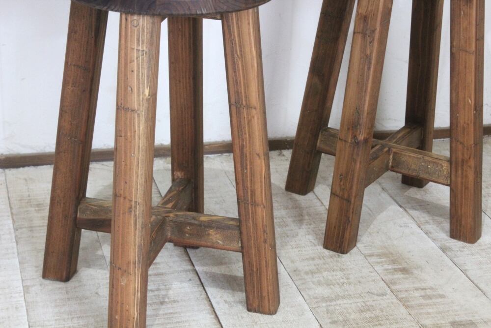 ハンドメイドのアンティーク風スツールです。アンティーク風仕上げなので、ダメージ加工、キズやへこみ等ございます。全て手作りで製作しており、丁寧に製作していますが、無垢材使用で、差し支えのない反りや割れ、製作時に生じた細かな傷や隙間等あるかも知れません。 手作り品をご理解のうえご入札宜しくお願い致します。