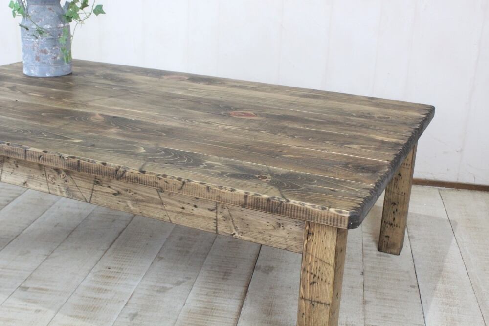 傷や凹みをダメージ加工を施したアンティーク風なカントリーローテーブルです。