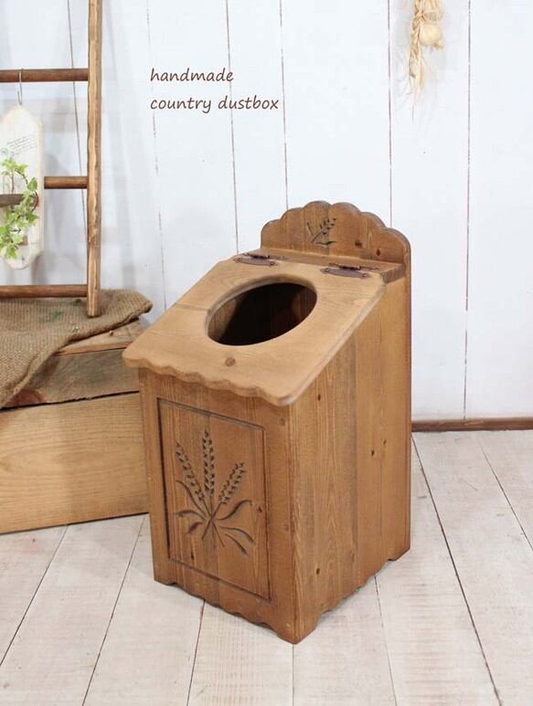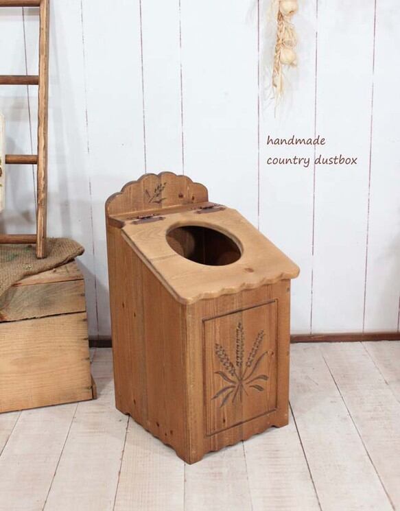 手作りの麦の穂を彫り込んだダストボックス、ゴミ箱です。