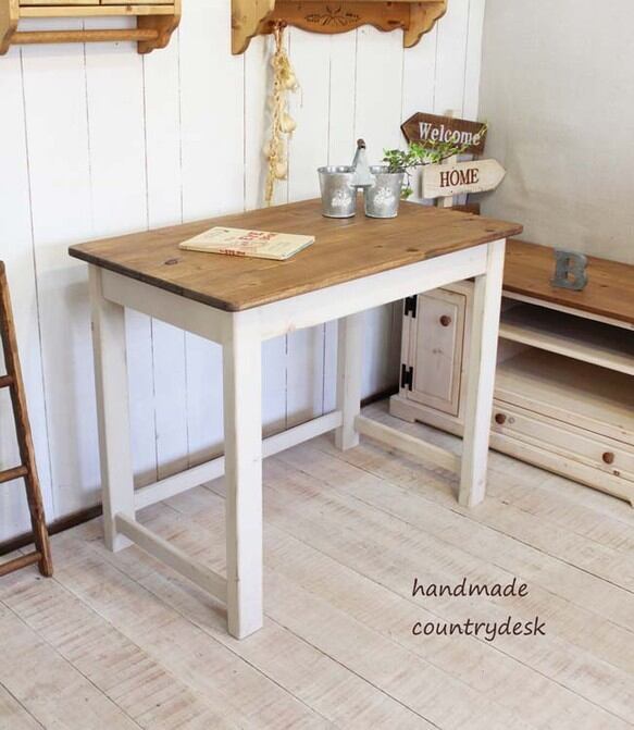 アンティークホワイト風に仕上げた手作りカントリーデスクです。作業テーブルにもいかがでしょうか?