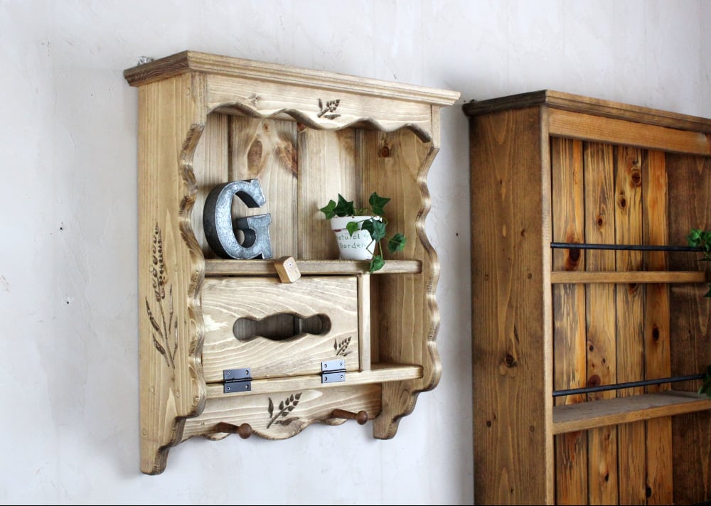ティッシュボックスつきの壁掛けシェルフです。