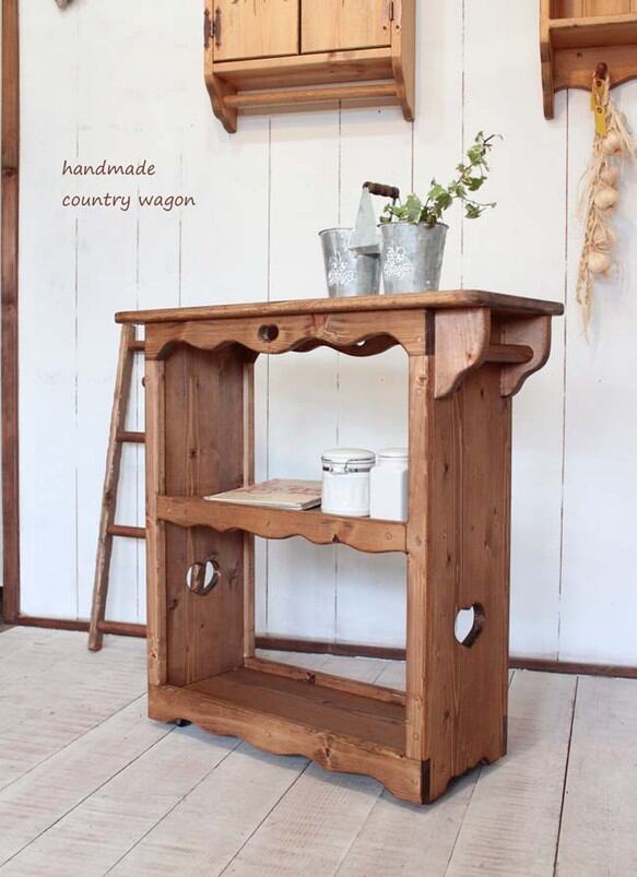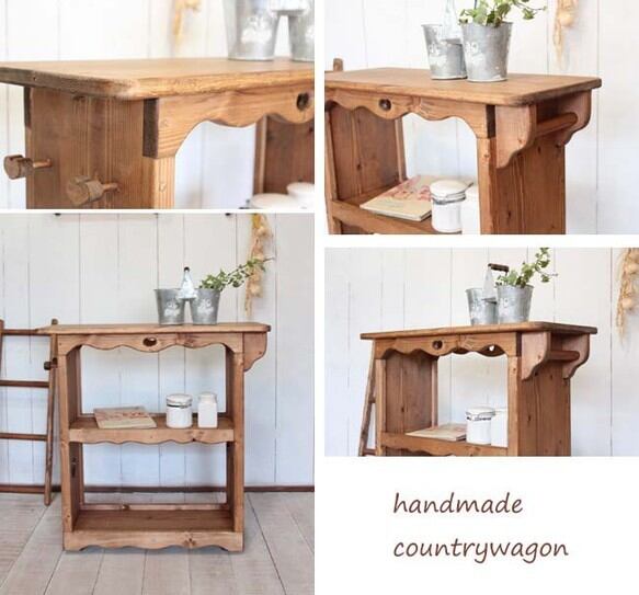 全て手作りで製作しており、丁寧に製作しているつもりですが、無垢の板使用で反りや割れ、製作時に生じた細かな傷や隙間等あるかもしれません。手作り品をご理解のうえ、ご入札宜しくお願い致します。小物類は含みません。