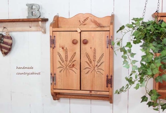 ハンドメイドの麦の穂のタオルホルダーつき収納ラックです。