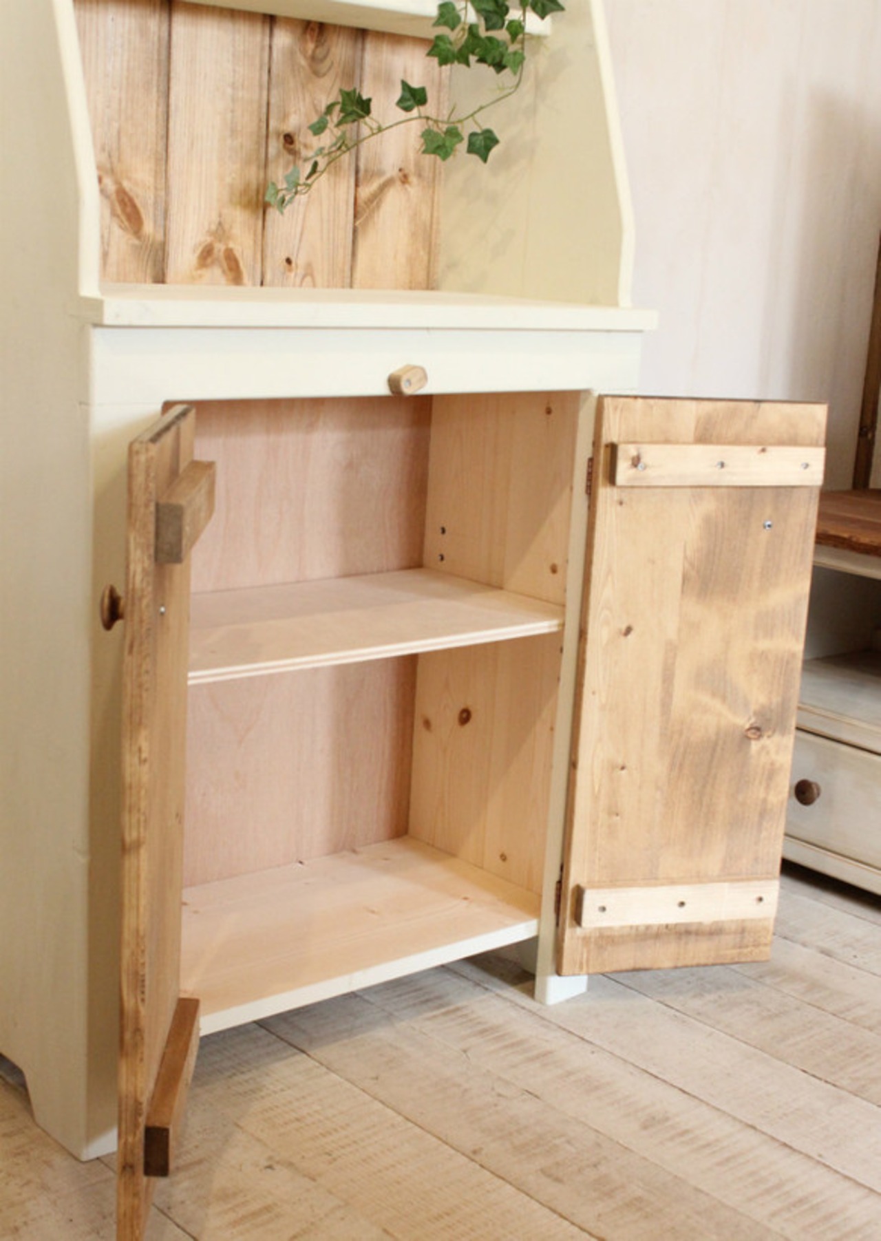 ホワイトシャビーなカップボードです。