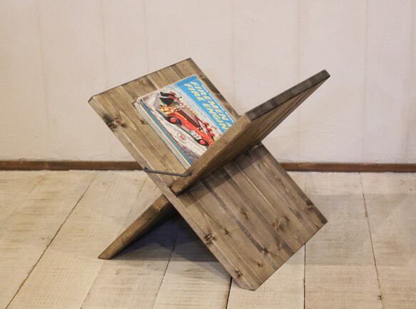 X型のマガジンラックです。こちらのお品は落札後の製作になりますので、製作にお時間を少し頂くことになります。(約2週間程度)