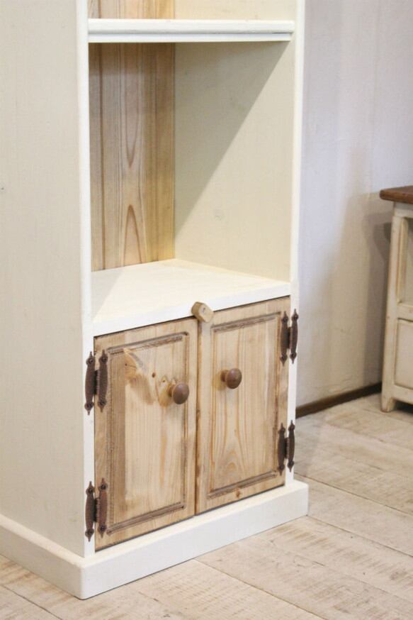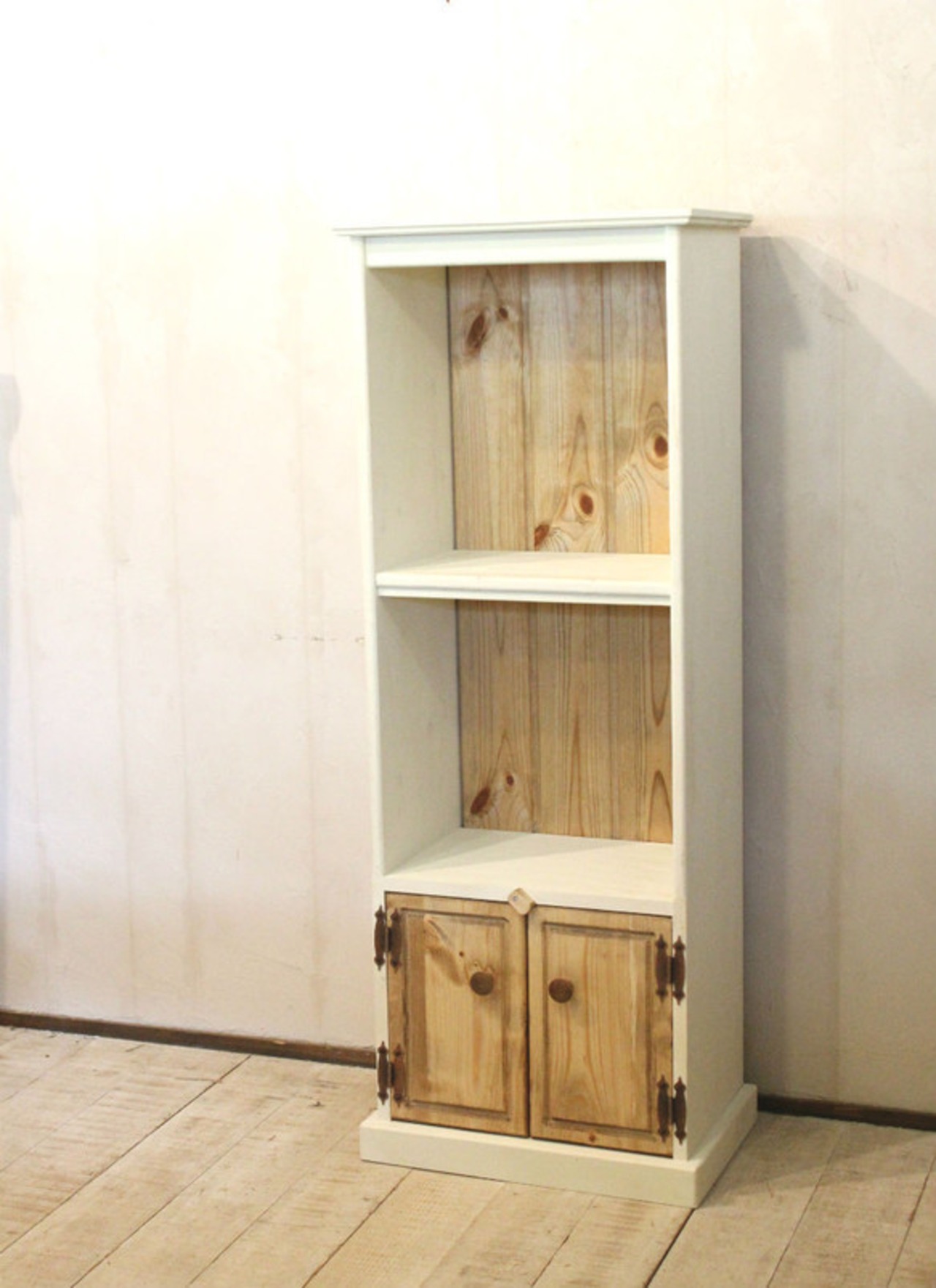 ホワイトシャビーな手作りのブックシェルフ、本棚です。