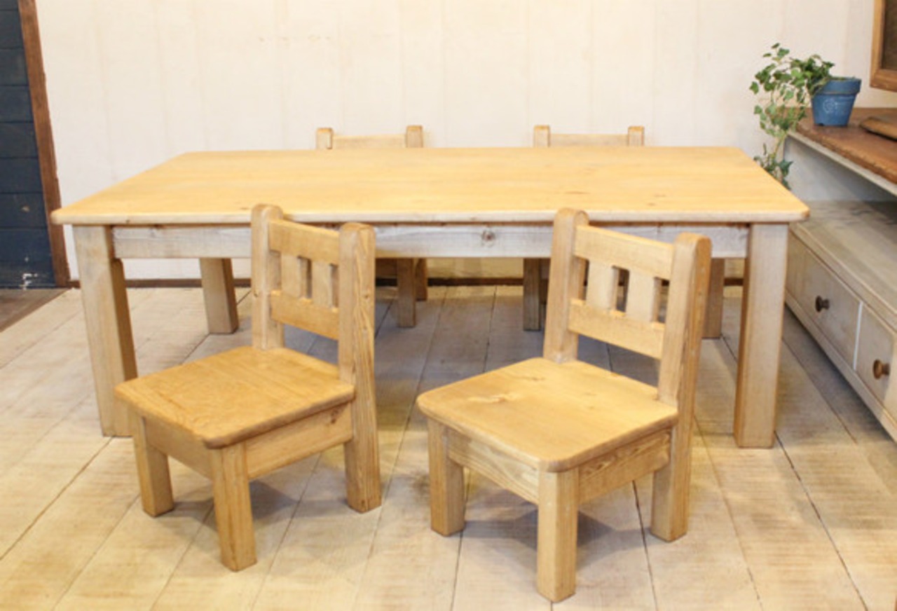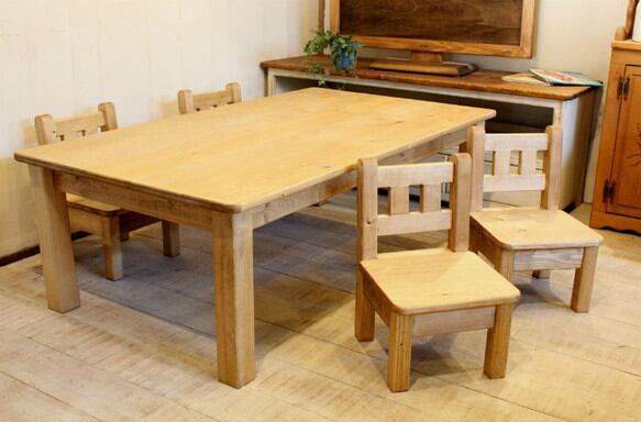 手作りの子供用キッズチェアーとテーブルセット、4人用です。お絵描きやお勉強、またはおやつ用にもいかがでしょうか?