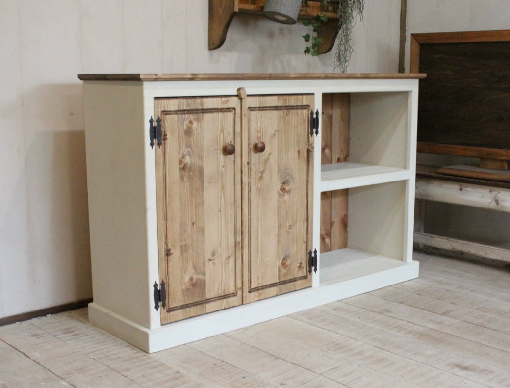 無垢材使用のハンドメイド品です。使用上差支えのない程度の細かな傷や隙間、割れ等ある場合がございます。画像は見本品です。同じ塗料で塗装しますが、その時々の材料の塗料の吸い込み具合等により色味が多少異なる場合があります。フシや木目等画像と異なる場合があります。