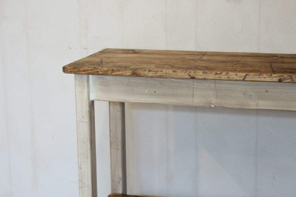 ハンドメイドのシャビーなサイドテーブルです。アンティークホワイト仕上げです。飾り台にもどうぞ。