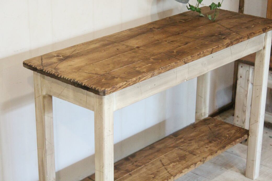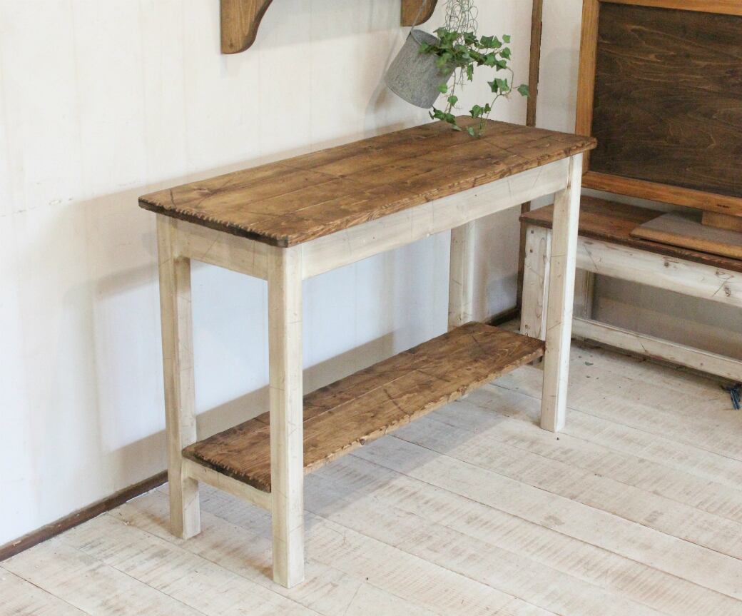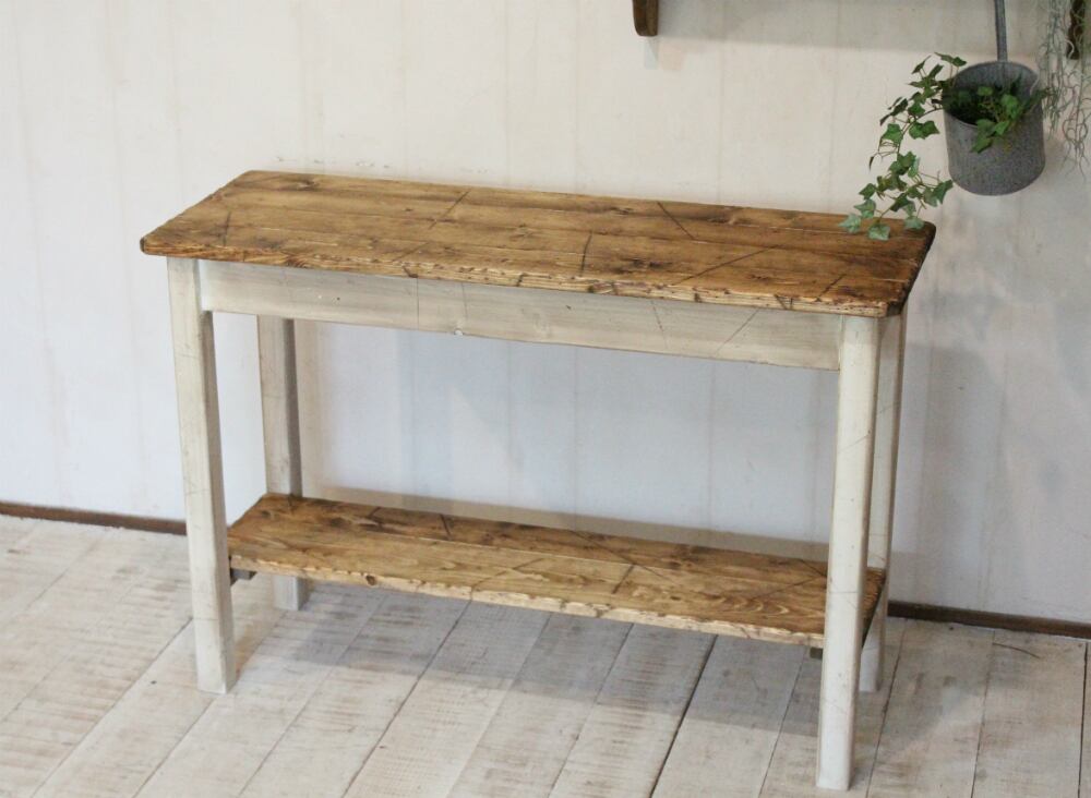 ダメージ加工 ホワイトシャビーサイドテーブルラック90 アンティークホワイト エイジング