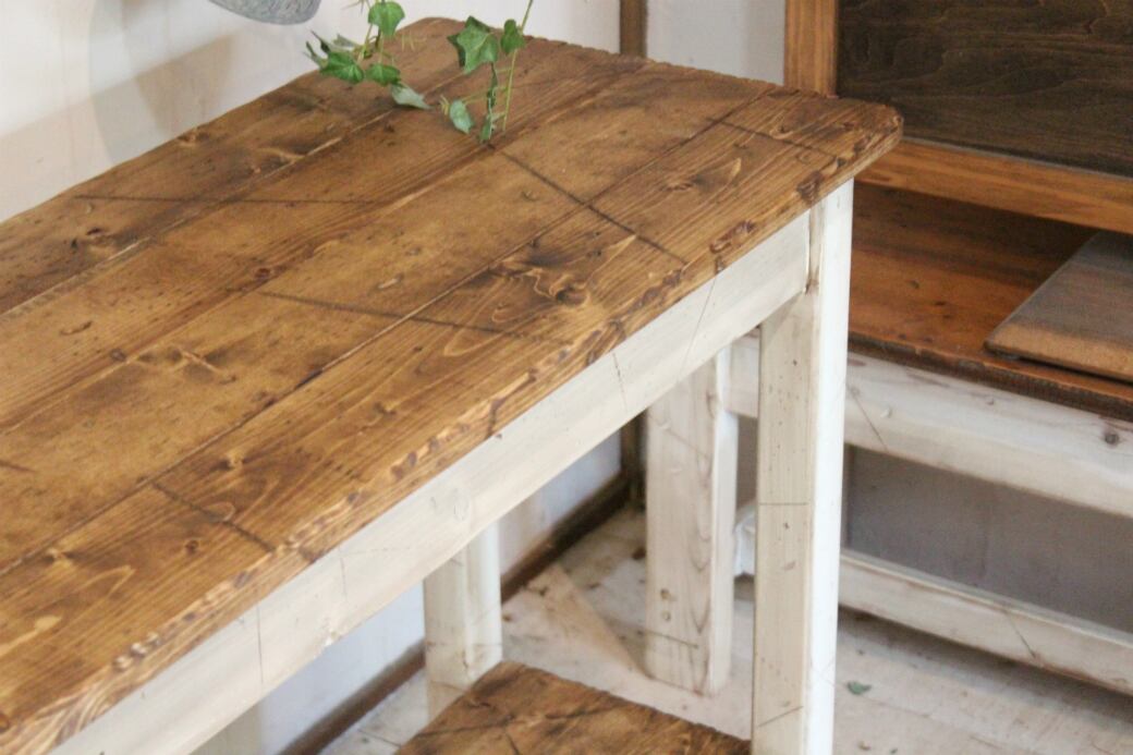 ハードなダメージ加工を施しています。このような古材の雰囲気が好きな方にいかがでしょうか。