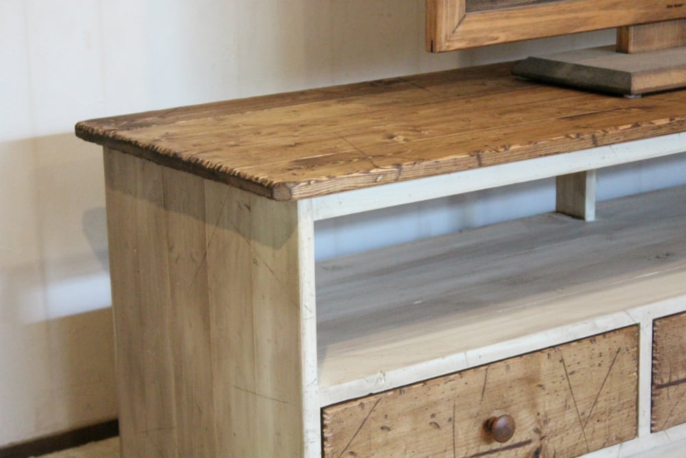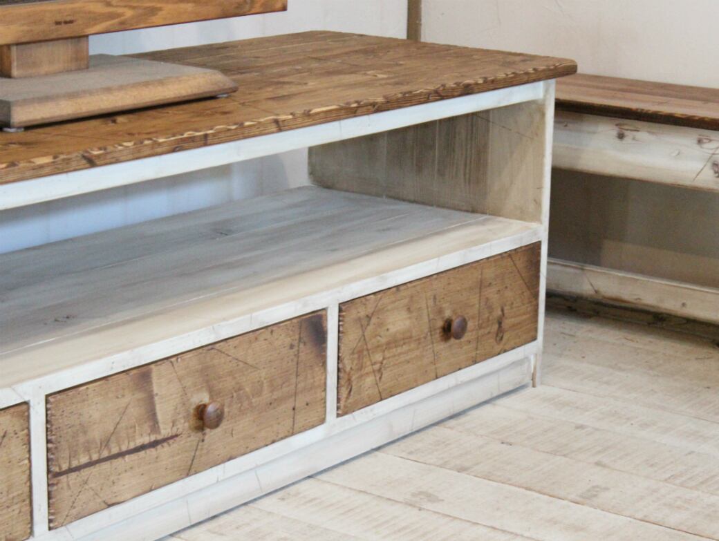 ダメージ加工を施したテレビボードです。ハードなダメージ感が好きな方にいかがでしょうか。