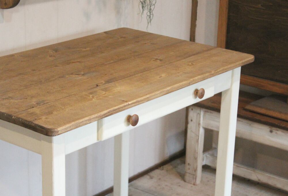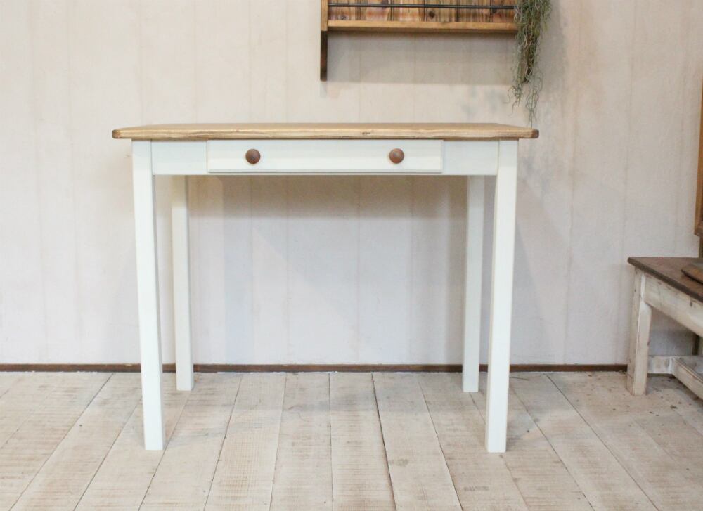 アンティークホワイト風に仕上げた手作りカントリーデスクです。引き出しつきです。チェアは含みません。