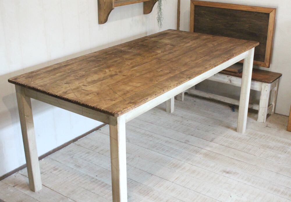 シャビーなダイニングテーブル160 アンティークホワイト ダメージ加工 エイジング