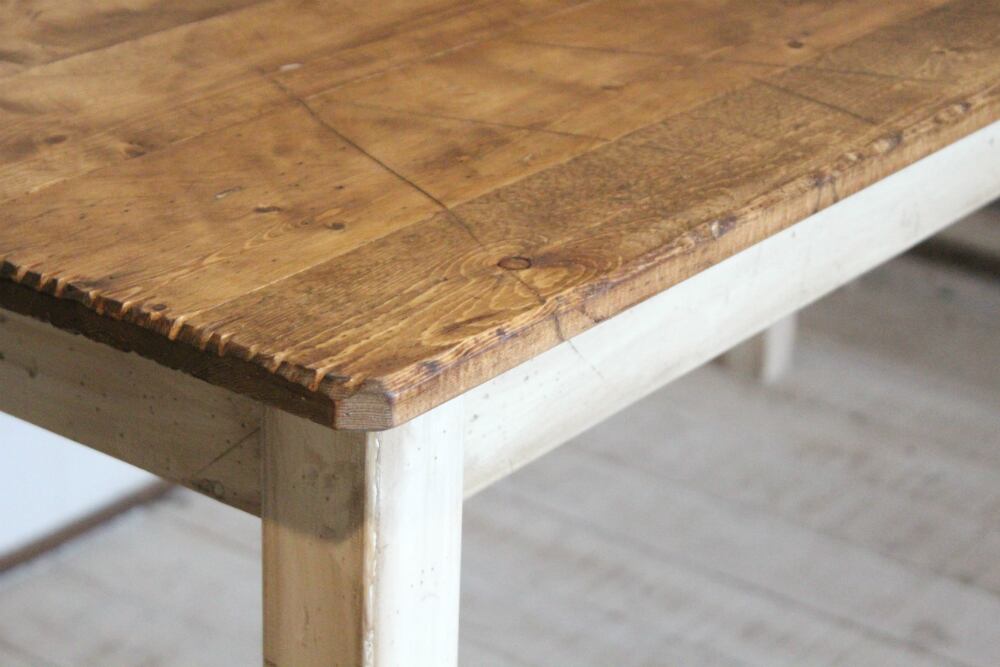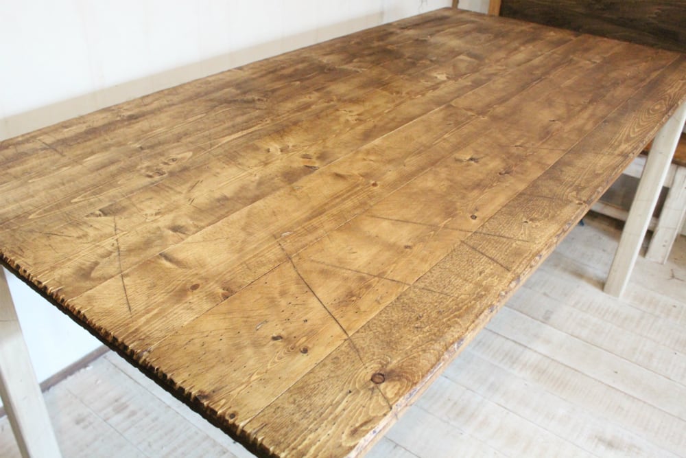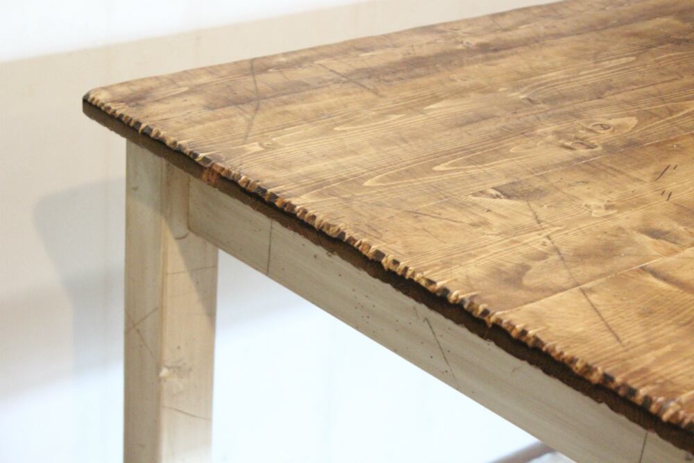 シャビーなダイニングテーブルです。強めにダメージ加工、エイジング加工を施しています。ハードな感じが好きな方向きです。