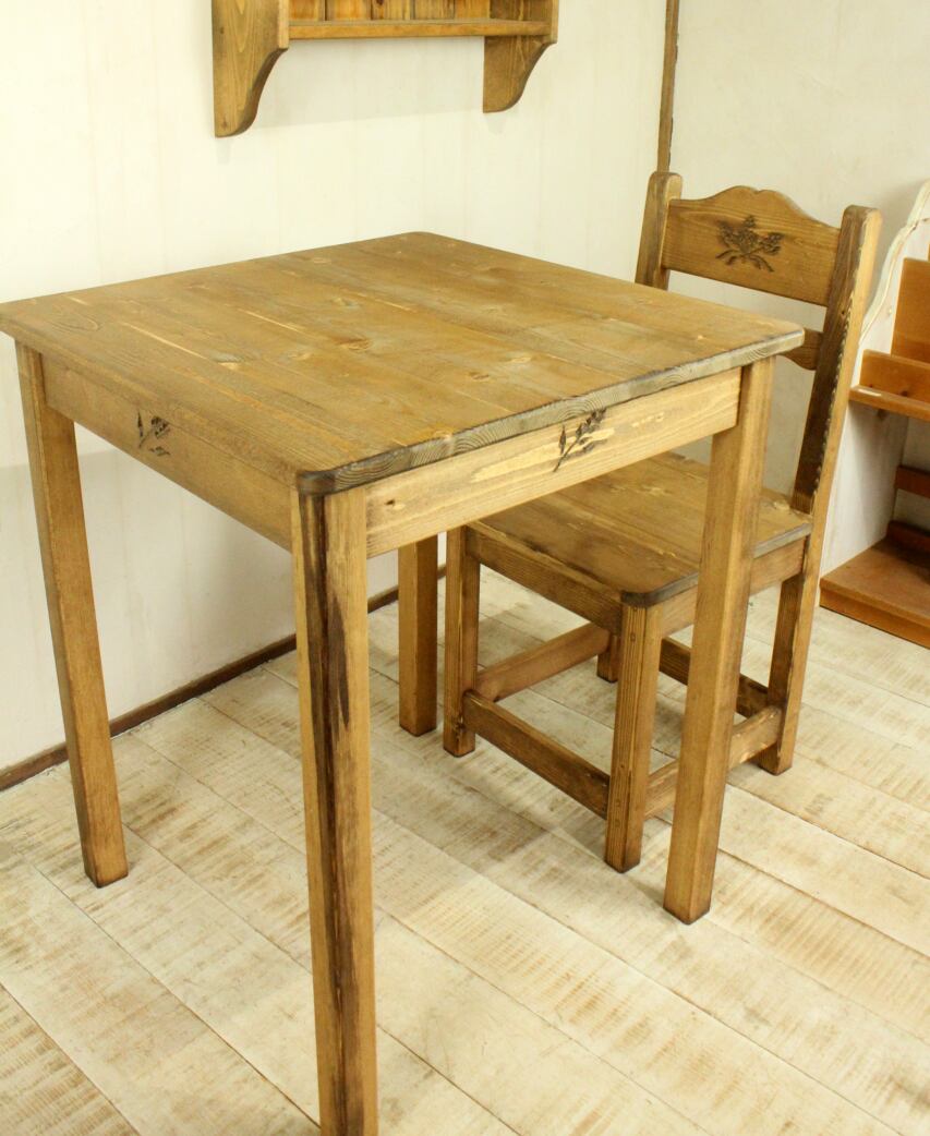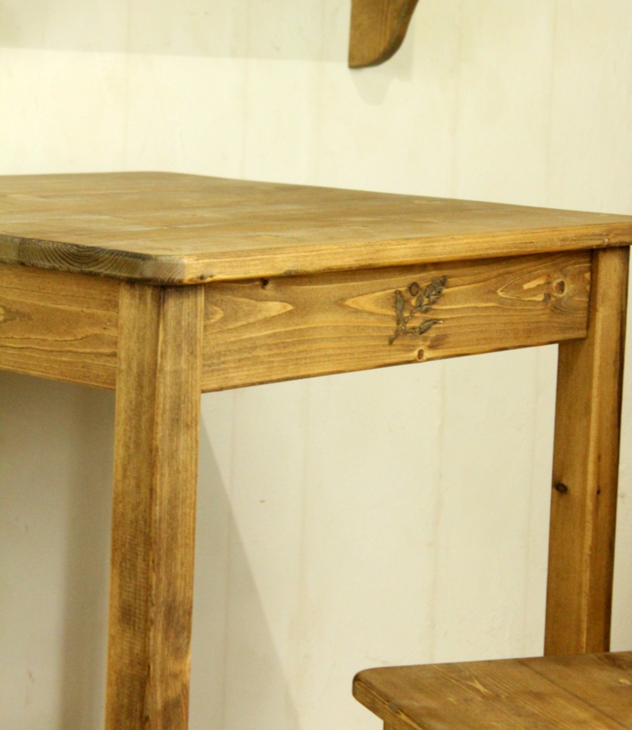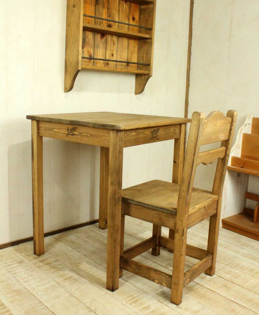 テーブルとイスのセットです。イスの背もたれには麦穂の彫り込みがあります。