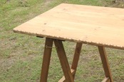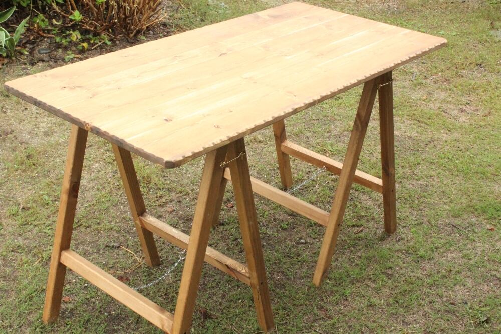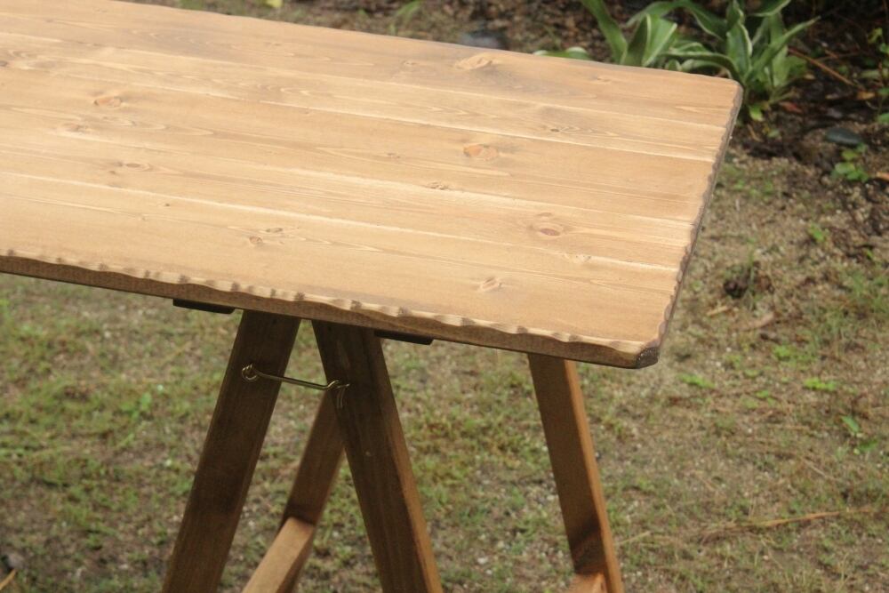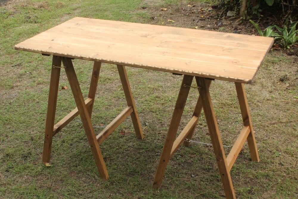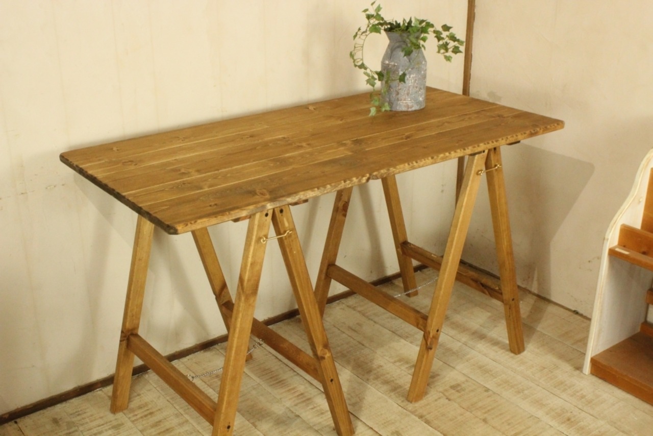 ハンドメイドで製作した折りたたみテーブルです。飾りテーブルやお店の什器などにもいかがでしょうか?サイズ幅120奥60高さ68センチ こちらのお品は落札後の製作となりますのでお時間を約3週間程度いただくことになります。木目等多少画像と異なります。すべてハンドメイドで製作しており、丁寧に製作しているつもりですが使用上差支えない程度の傷や隙間等ある場合がございます。手作り品をご理解の上、よろしくお願いいたします。テーブル以外の小物類は含みません。